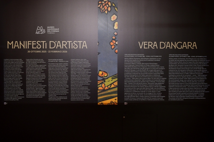 The exhibition MANIFESTI D'ARTISTA (Film Posters by Artists)  on view from October 20, 2025 to February 22, 2026 – showcases a selection of film posters of outstanding historical and artistic significance: from the Futurism of Prampolini and Scarpelli to the graphic elegance of Toddi and Vera D’Angara, from Rodchenko’s expressive power in Battleship Potemkin to the creative genius of Baj and Guttuso.