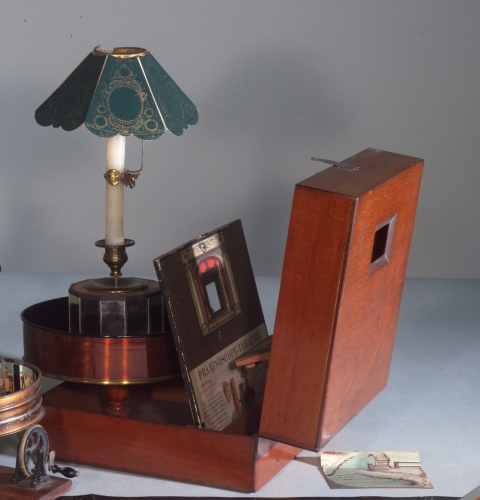 La collezione di Archeologia del Cinema racconta l’universo spettacolare che allietava il pubblico di ogni età e ceto sociale prima della nascita del cinema: tante storie diverse che hanno dato origine a un mondo variopinto, stupefacente ed eccentrico riprodotto da ombre cinesi, scatole ottiche, lanterne magiche e dai successivi dispositivi per animare le immagini, qui documentato da una variegata raccolta che comprende anche stampe, quadri, cerami­che e altri rari reperti ico­nografici. Sulle orme di Maria Adriana Prolo la fondatrice del Museo, si è continuato negli anni ad arricchire la collezione originaria. In particolare vanno citate due acquisizioni: la raccolta dei gemelli John e William Barnes, una delle collezioni private inglesi di maggior valore, e la raccolta di Pierre e Zette Levie, una coppia belga accomunata dalla stessa passione collezionistica.