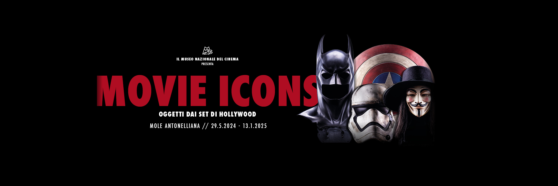 MOVIE ICONS. Oggetti dai set di Hollywood è organizzata dal Museo Nazionale del Cinema di Torino in collaborazione con Theatrum Mundi. Curata da Domenico De Gaetano, direttore del Museo Nazionale del Cinema e da Luca Cableri, direttore della galleria Theatrum Mundi di Arezzo, la mostra è stata inaugurata il 28 maggio alla presenza degli scenografi tre volte vincitori del Premio Oscar Dante Ferretti e Francesca Lo Schiavo.