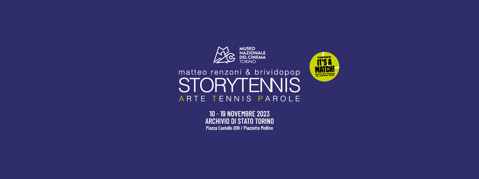 Il progetto artistico, adattato per l’occasione da Domenico De Gaetano, direttore del Museo Nazionale del Cinema, sarà esposto all’Archivio di Stato di Torino, uno dei quartier generali delle Nitto ATP Finals e sarà visitabile gratuitamente per tutta la durata dell’evento, dal 10 al 19 novembre 2023, con orario dalle ore 11.00 alle 20.00 (per la sola giornata del 10 novembre dalle ore 14.30 alle 20.00). L'ingresso è libero.